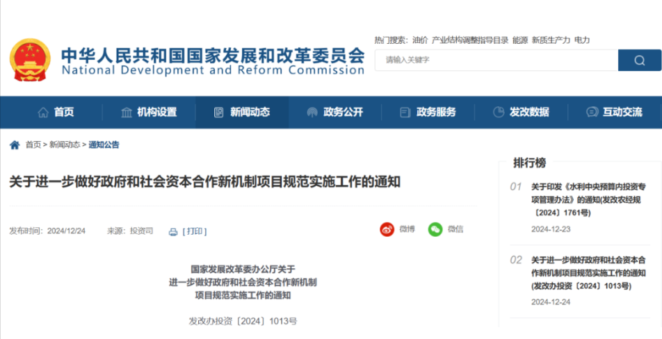 國(guó)家(jiā)發展改革委辦公廳關于進一(yī)步做(zπuò)好(hǎo)政府和(hé)社會(huì)®≈資本合作(zuò)新機(jī)制(zhì)項≈β$'目規範實施工(gōng)作(zuò)的(de)通(tōng)知(zh ←♦≠ī)發改辦投資〔2024〕1013号各省、自(πλ∑zì)治區(qū)、直轄市(shì)及計(j©☆™♦ì)劃單列市(shì)、新疆生(shēng)産建設兵(bīng)€∑團發展改...