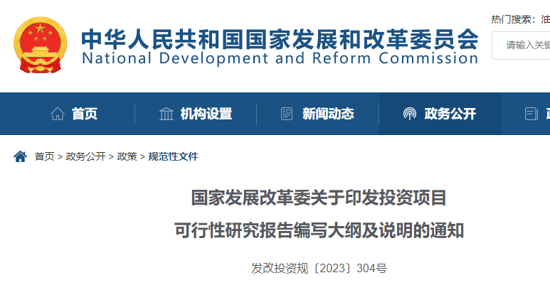 發改委印發2023版《投資項目可(kě)行(xβ∞íng)性...