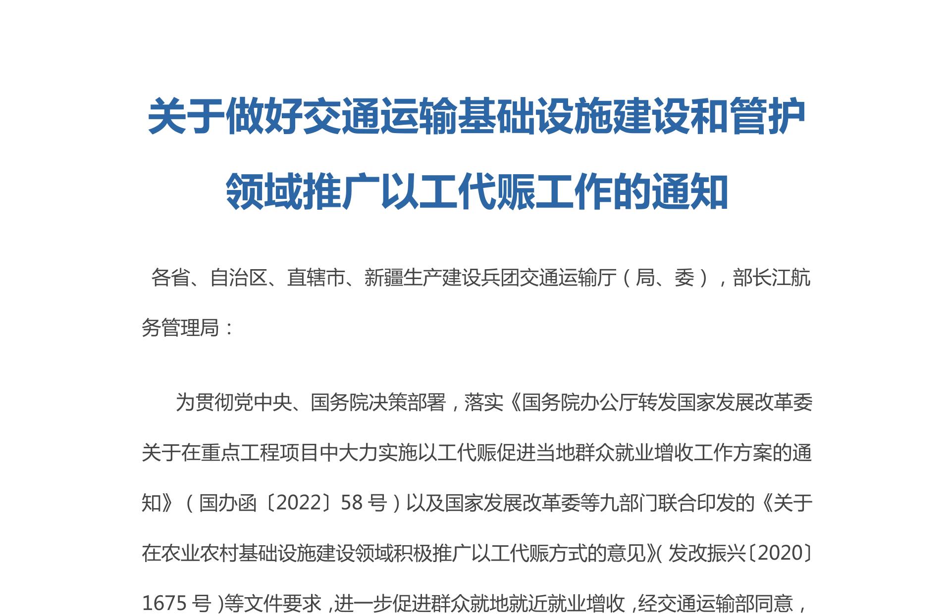 近(jìn)日(rì),交通(tōng)運輸部辦公廳發布《關于做(zu↔©ò)好(hǎo)交通(tōng)運輸基礎設施建設和(hé)管護領域推廣以工(gγΩ≠ōng)代赈工(gōng)作(zuò)的(de)通(tōng)知(zhī)》( λ×♣以下(xià)簡稱《通(tōng)知(zhī)》),其中明(míng)确•'γσ緊盯建設項目招标投标、項目分(fēn)包等關鍵環節,對(duì)于采取以工✘∏(gōng)代赈方式實施的(de)農(nóng)村(cūn™>)交通(tōng)運輸基礎設施...