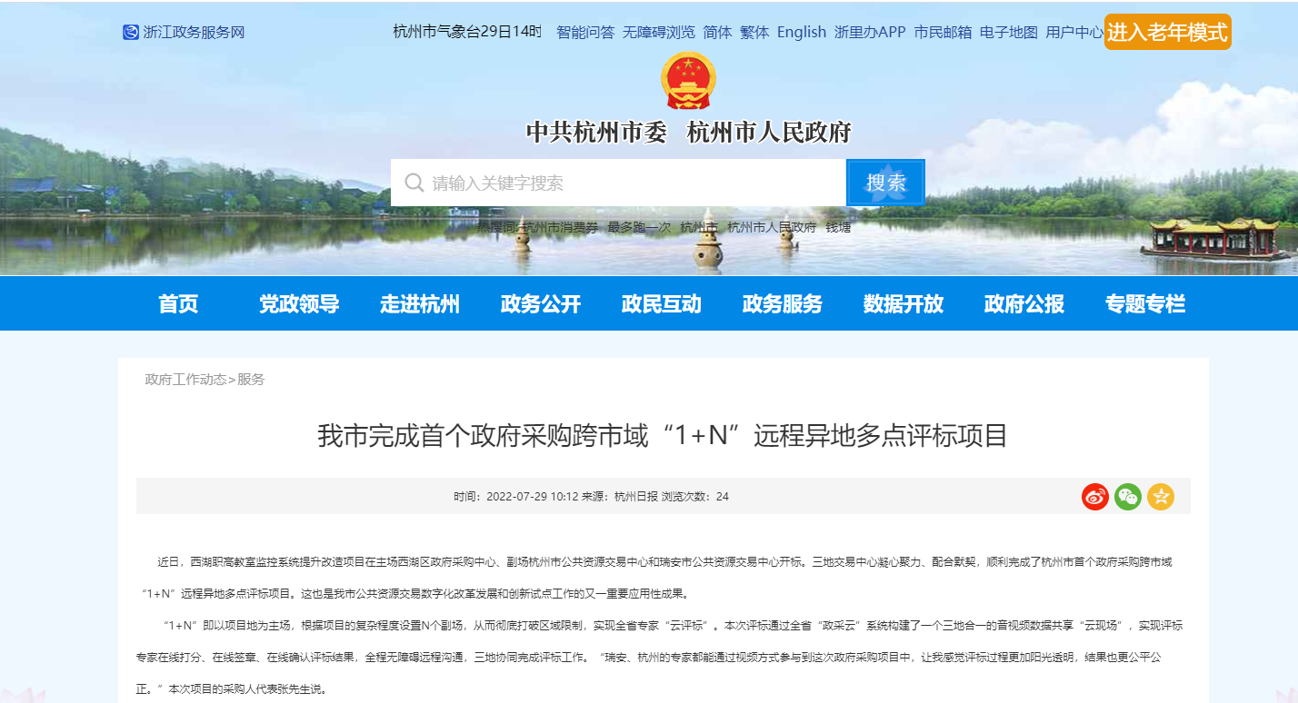 杭州丨完成首個(gè)政府采購(gòu)跨市(shì)域''®±≠1+N...