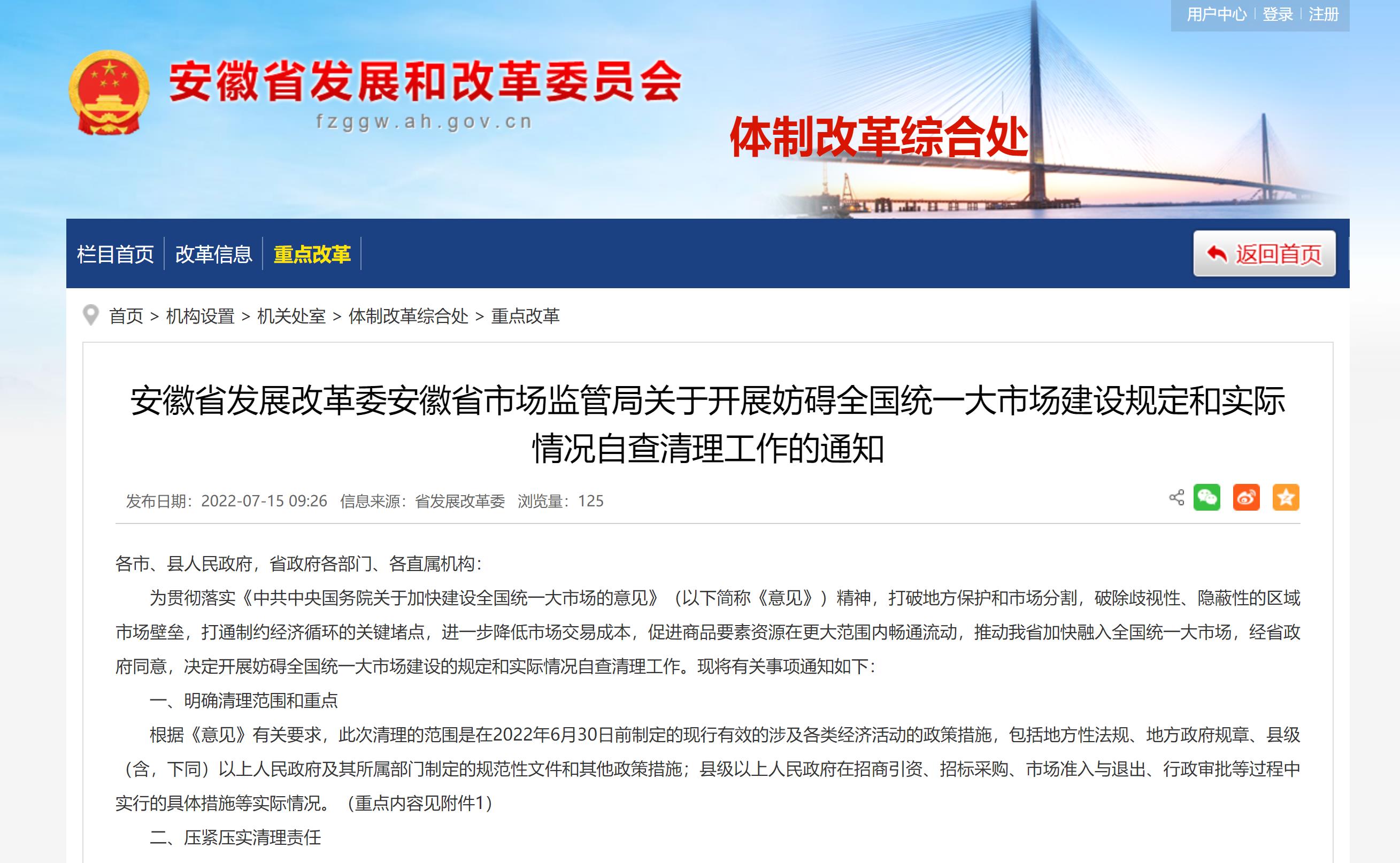 安徽|清理(lǐ)政采領域妨礙全國(guó₩β→∑)統一(yī)大(dà)市(shì)...