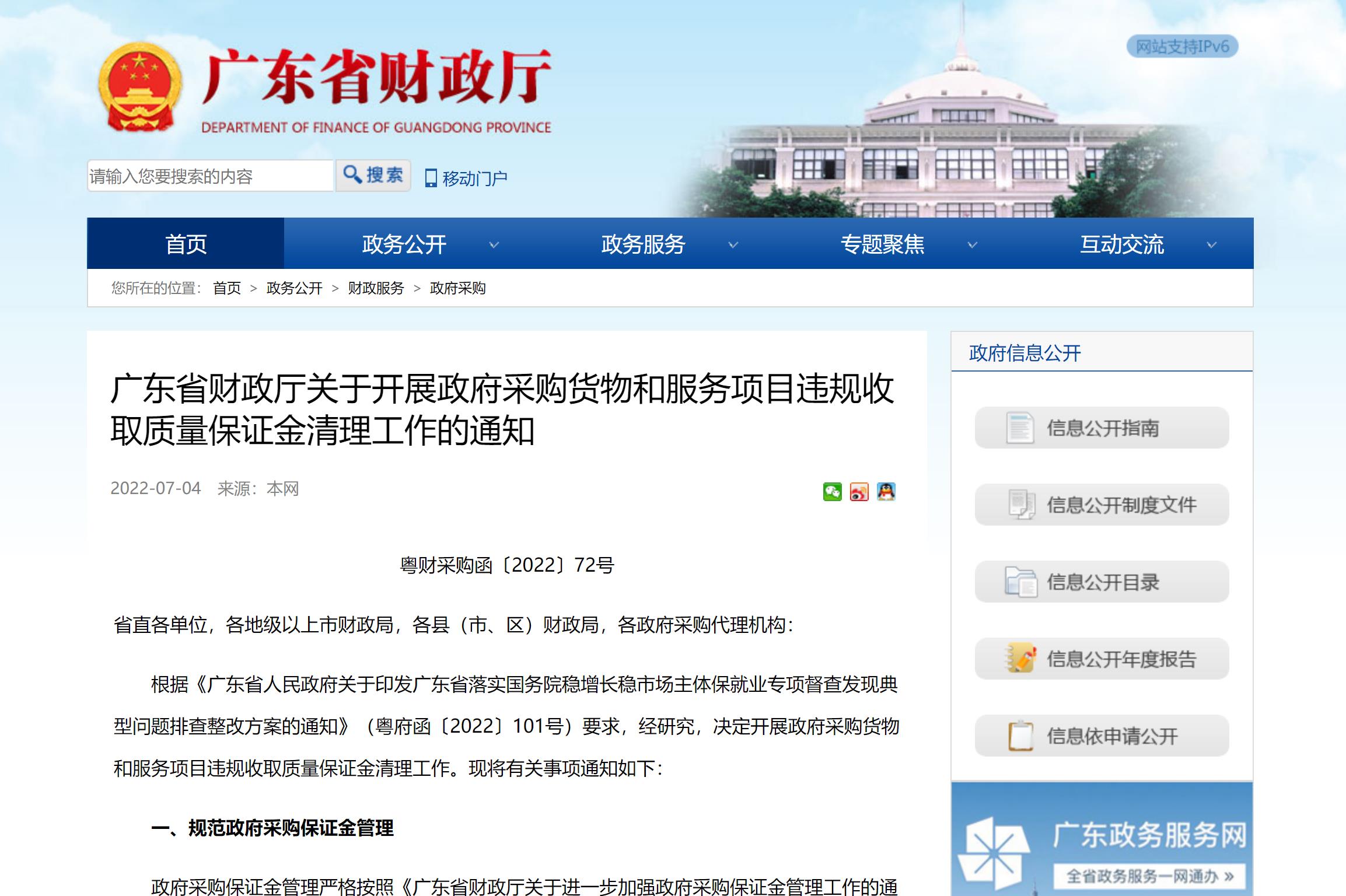 日(rì)前,珠海(hǎi)市(shì)财₹★政局發布《關于開(kāi)展政府采購(gòu)貨物(×δwù)和(hé)服務項目違規收取質量保證金(jīn)清理(lǐ)工(≤π∞♦gōng)作(zuò)的(de)通(tōng)知(zhī) ¶》(以下(xià)簡稱《通(tōng)知(zhī)》),其中明→"λ♠(míng)确,對(duì)2021年(nián)以來(≤lái)政府采購(gòu)貨物(wù)和(h©™é)服務項目違規收取質量保證金(jīn)問(wèn)題開(kāi)展自(zβ≤γì)查清理(lǐ)。...