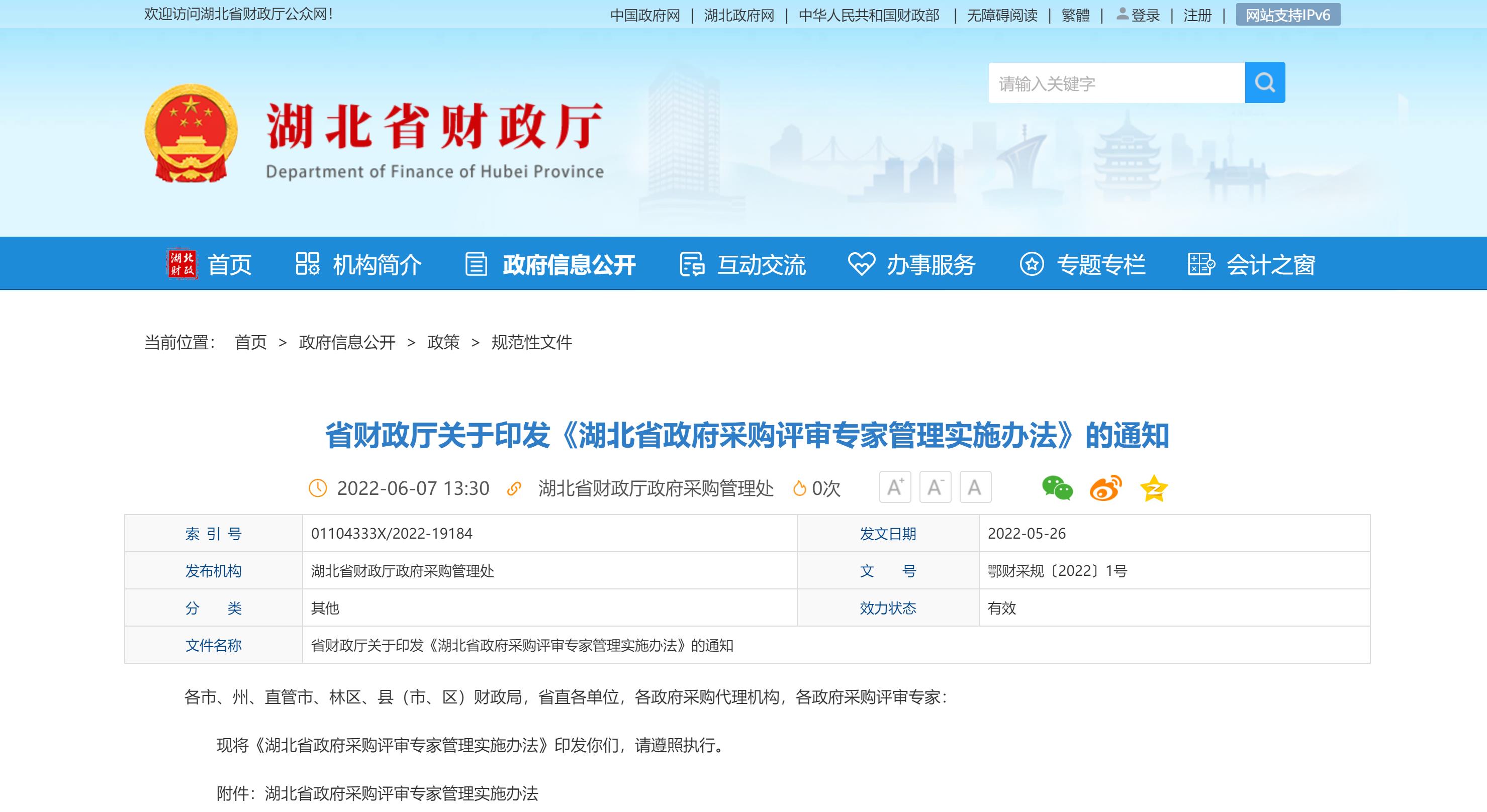 财政廳 | 湖(hú)北(běi)評審專家(jiā)管理(lǐ)“升級..σ✘∑↑.