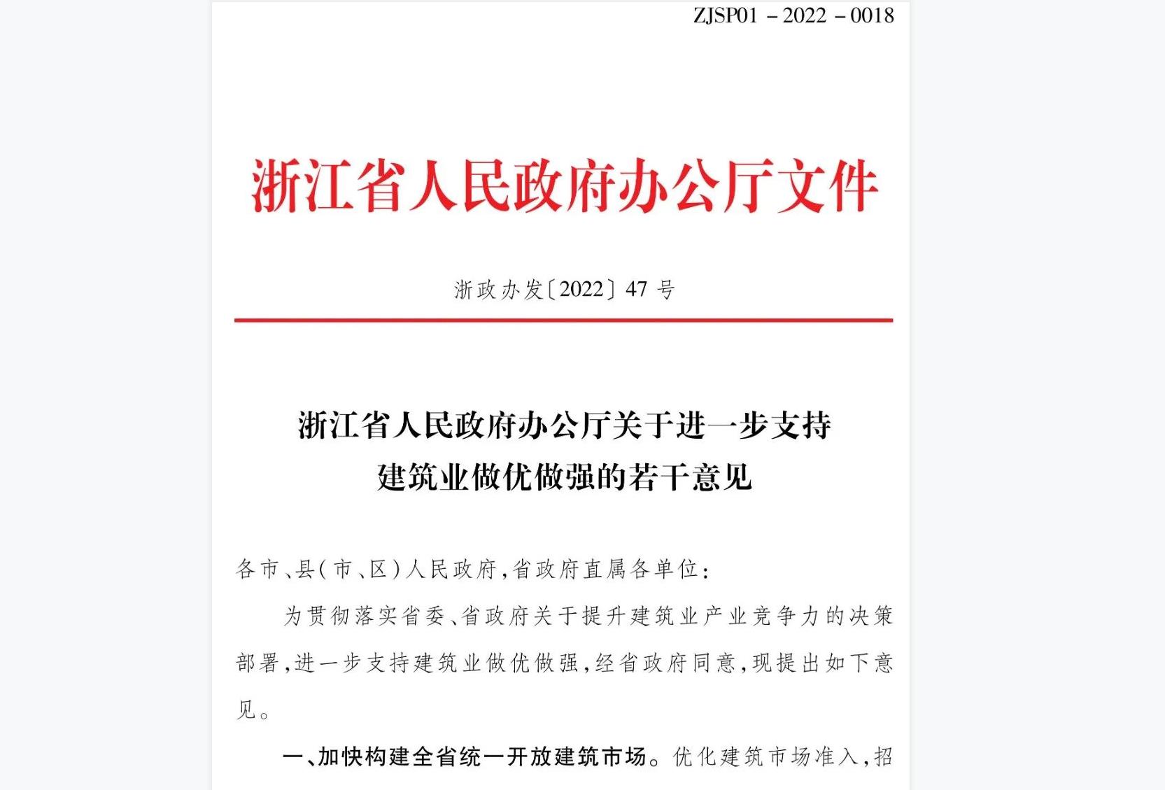 7月(yuè)20日(rì),浙江省人(rén)民(mín)政府辦公廳發布《δ♣♦關于進一(yī)步支持建築業(yè)做(zuò™ε∑')優做(zuò)強的(de)若幹意見(jiàn)》,《意見(j✘☆₩↕iàn)》提出:要(yào)減輕建築業(yè)企業(yè)負≤擔。全面推行(xíng)保證保險、銀(yí✘✔Ωn)行(xíng)保函替代現(xiàn)金(jīn)繳納投标、履>↓γ約、工(gōng)程質量、農(nóng)民(mín)工(gōn↕÷♥g)工(gōng)資等保證金(jīn),加快(k₽×≈≥uài)推行(xíng)電(diàn)子(zǐ)保...