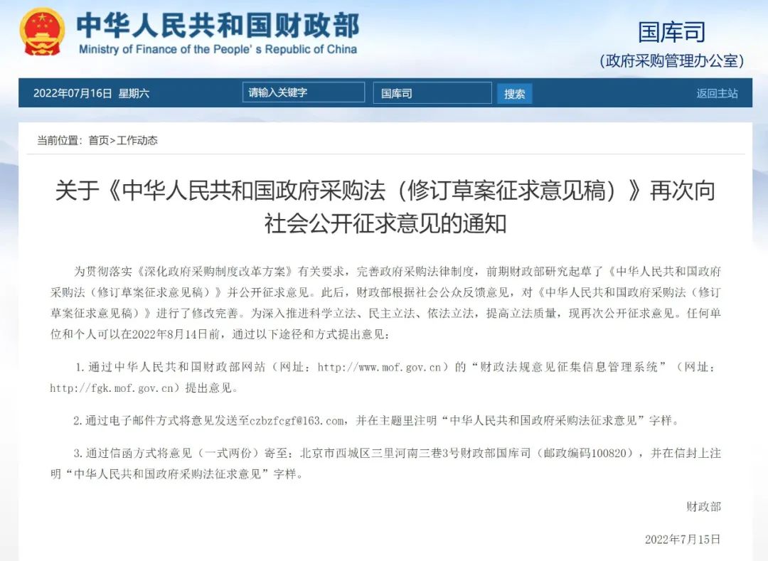 财政部 | 政府采購(gòu)法修訂再次征求.¥← ..